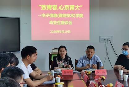 6月19日下午,电子信息(微纳技术)学院在诚思楼407会议室召开主题为“致青春,心系青大”--英国上市公司官网3652020届毕业生座谈会。英国上市公司官网365党委书记苗洪丽、副书记李政、院长助理宿杰,各系主任、副主任、支部书记、辅导员等出席本次活动,来自2020届本科毕业年级的8位学生代表参加座谈会,畅谈在校生活,建言学院建设。座谈会由党委副书记李政主持。