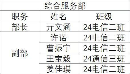 综合服务部是保障组织高效运转的核心支撑部门,主要承担统筹协调、行政保障、后勤服务及综合管理等职能,为各业务板块提供全方位、一体化的服务。既要当好组织运转的“润滑剂”,推动各环节协同联动;也要做好后勤保障的“服务员”,为业务发展和成员工作提供坚实支撑。